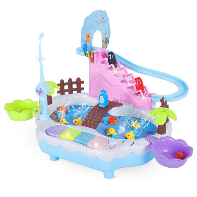 Electric magnetic fishing toy 3-6 years old penguin climb stairs music light play interactive educational toys Size:28.5*18*24cm Packet:1x fishing toys
