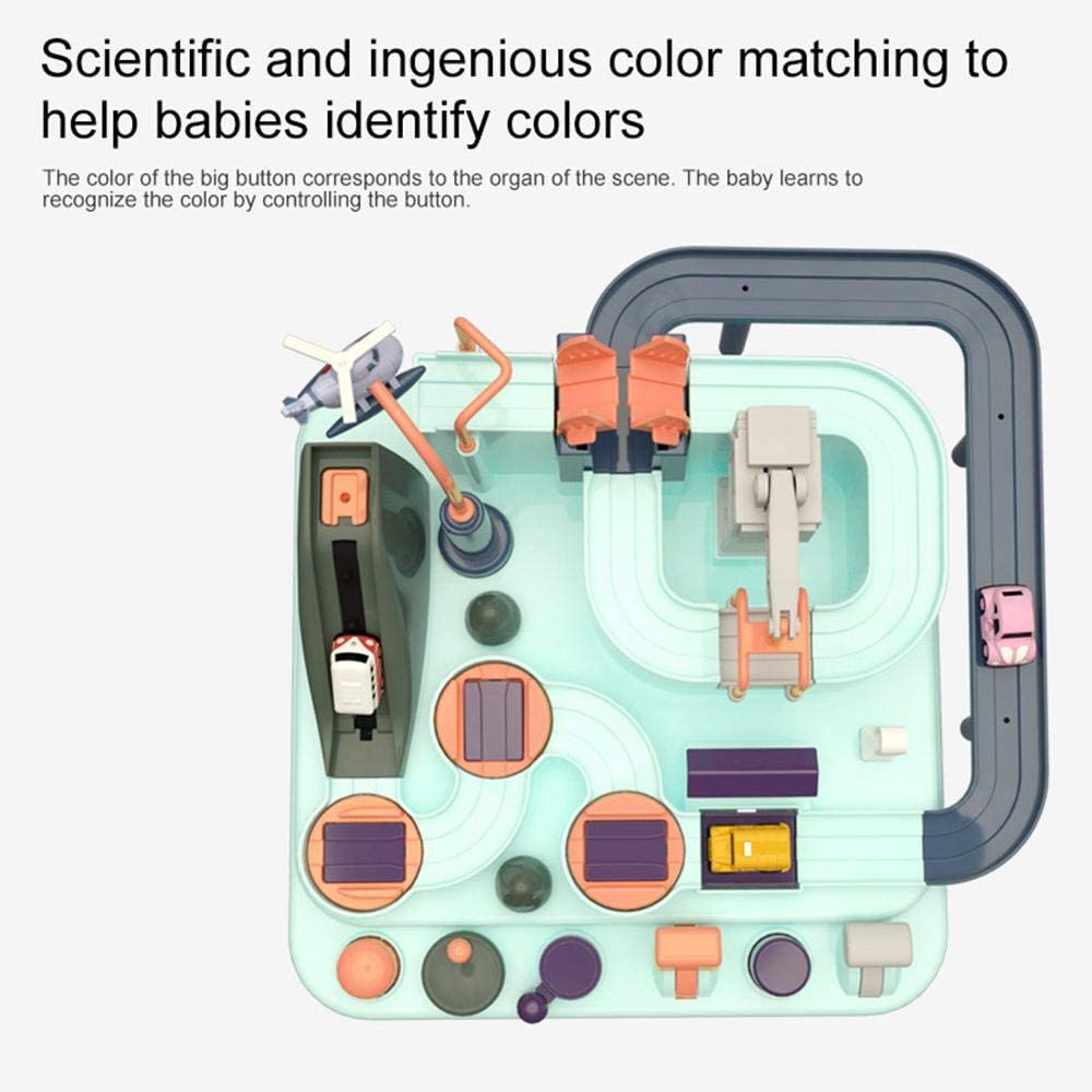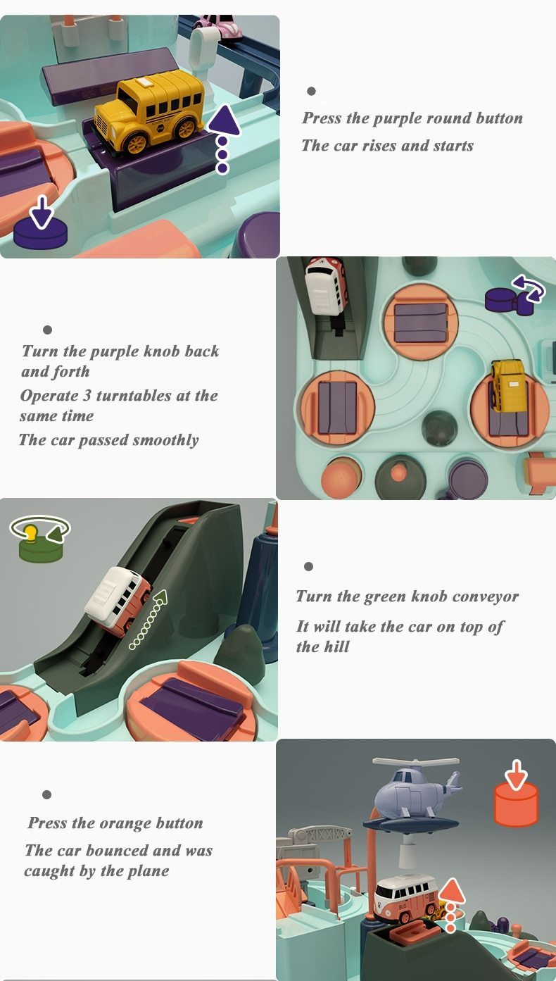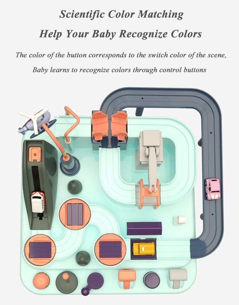 - Functional & Creative Design: There are 6 buttons to controlling and pass 8 different challenges. Package includes 4 mini cars (police car, ambulance, fire engine) for kids to play together. The track table vehicle set is designed with a unique color matching to stimulate kids' color perception.