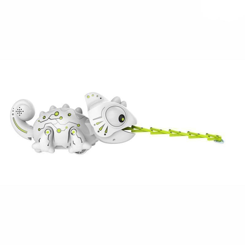 The Robo Chameleon features fun, eye-catching color and animation effects! When you power him up, he wags his tail excitedly and his spines and crest flash different colors! While using the remote to control him and help him explore, you can switch between colors with the color button. His curly tail wags as he moves, and his eyes look around curiously.
