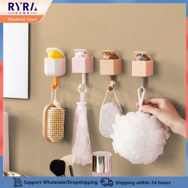 Self Adhesive Wall Hook Creative Cat Door Hanger Pop-up Kitchen Bathroom Rack Animal Decor Hooks For Key Umbrella Towel Cap Coat