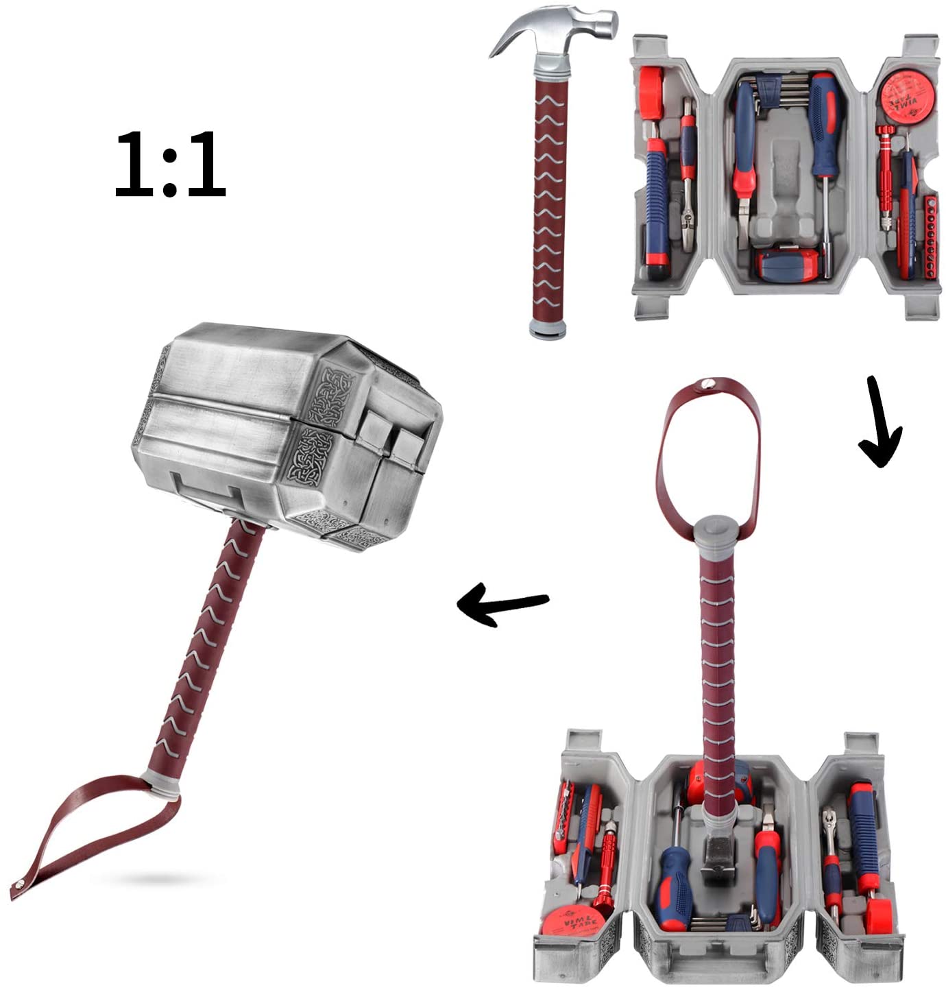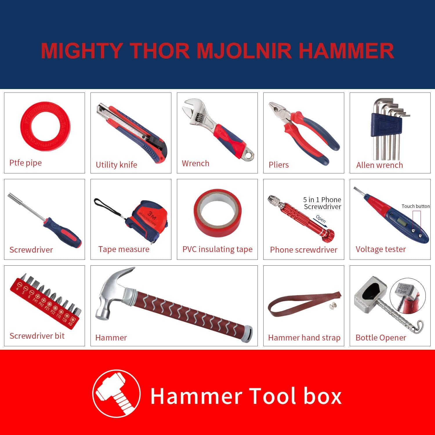 - PERFECT GIFT: Amazing design and practical for use, our thor tool set is designed with true fans in mind. This thor tool-set hammer allows the handyman in your life the tools he or she may need to fix the problem. Great gift for a Birthday, Christmas, Mother's Day, Father's Day, Valentines Day, Halloween, or any other special occasion.